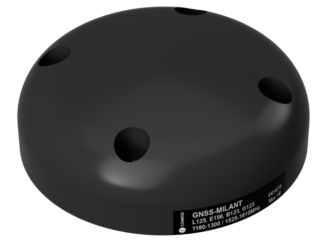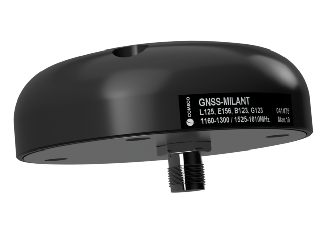 The GNSS-MILANT antenna provides low-noise coverage of the entire GNSS frequency range in L band and efficient suppression of out-of-band interferences. The antenna covers all the GNSS standards including GPS, Galileo, Glonass and Beidou. The electrical and mechanical interfaces are compatible with those of most currently used narrowband L1/L2 GPS antennas. The GNSS-MILANT was designed in collaboration with Fraunhofer IIS, Germany.