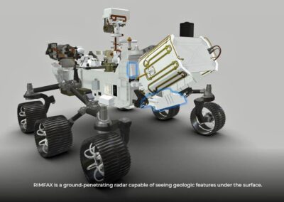 RIMFAX provides centimeter scale resolution of the geologic structure, allowing scientists to search for evidence of past life deep underneath the Mars surface. After the rover touches down in February 2021, the Comrod antenna will be hard at work helping NASA discover the secrets of the red planet.